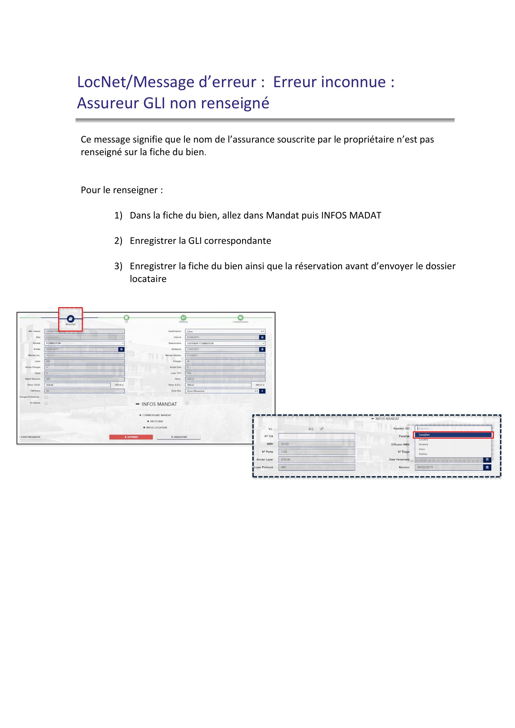 Erreur Envoi du dossier locataire : Asssureur GLI non renseigné